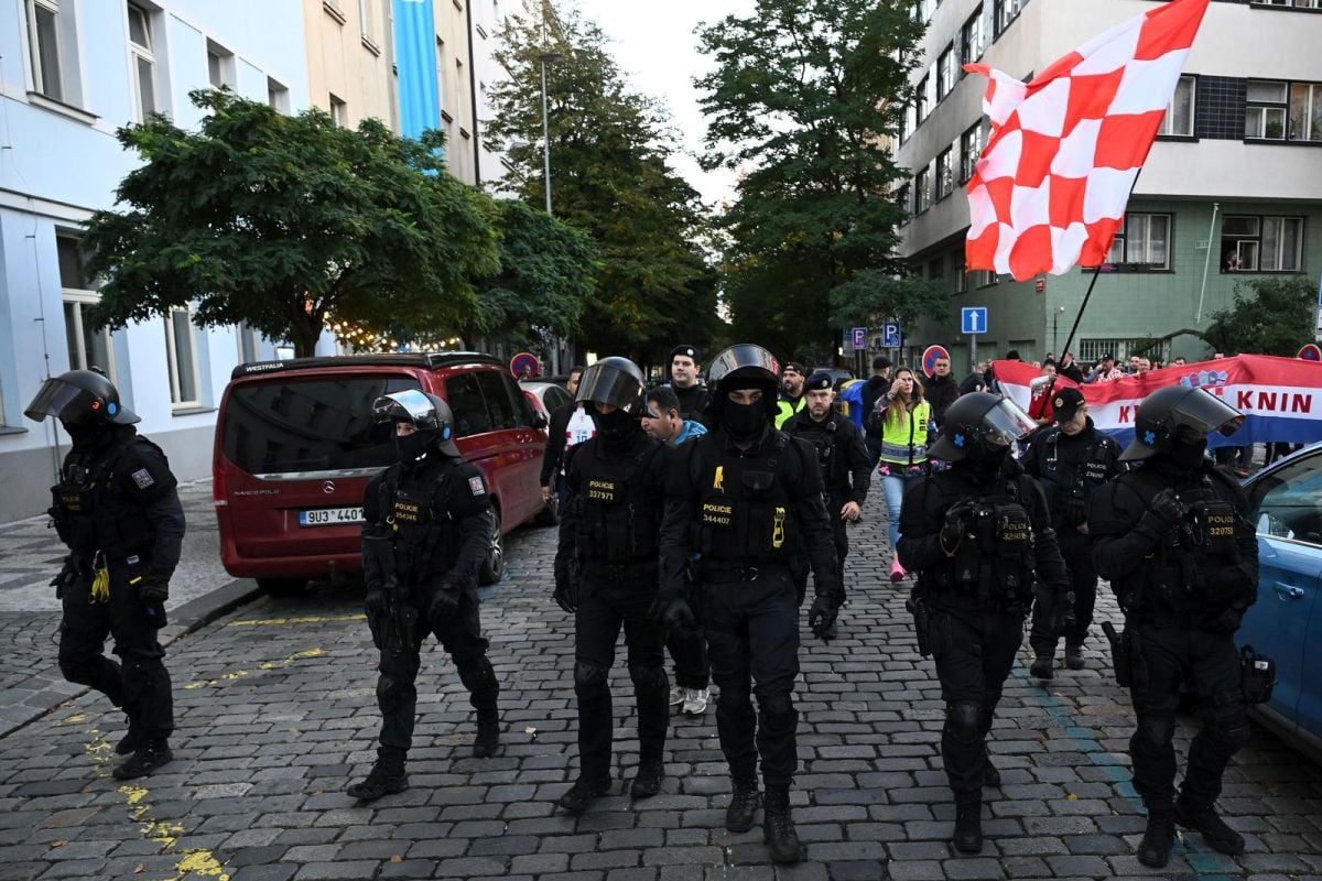 Korteo hrvatskih navijača, koji je počeo ispred baze u Becketts Irish Pubu, prema stadionu Fortuna Arena u Pragu udaljenom oko pola sata hoda, na utakmicu Češke i Hrvatske, počeo je uz navijačke pjesme oko 18 sati. A onda se dogodio i incident.