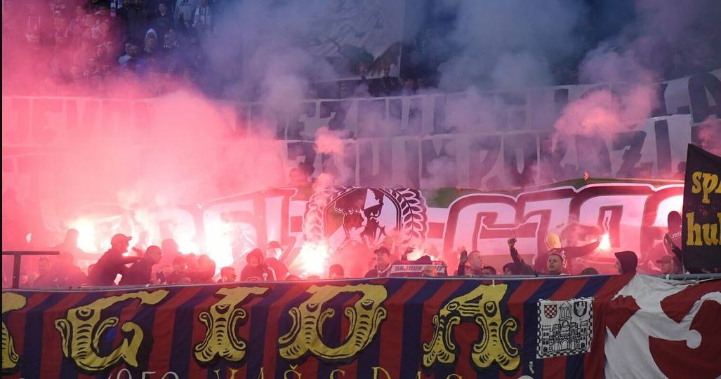 Pažnju pored terena, privukla je i kao uvijek tribina, sjever Poljuda, kada je Torcida podigla navijački plijen – jedan od udarnih transparenata navijačke grupe Green Dragons Ljubljana iz Slovenije, o kojem se pričalo već duže vrijeme na društvenim mrežama. Torcida je zatim odlučila da zapali transparent i zapjevala grmoglasno “Tražim je na karti – nema je, Slovenije”